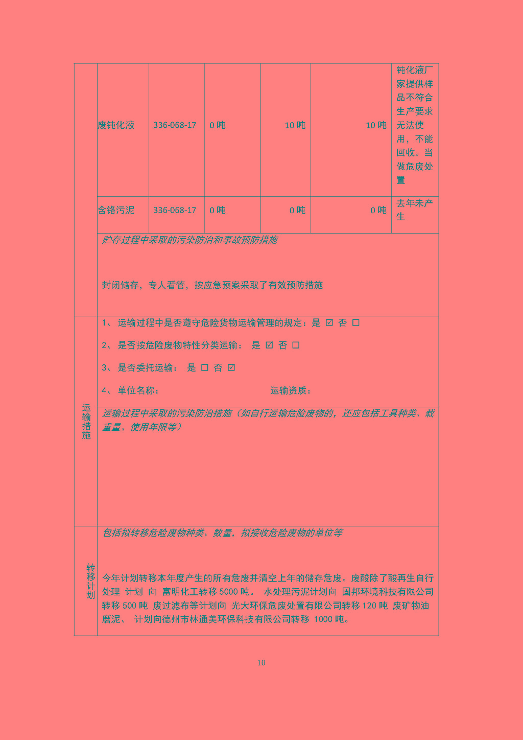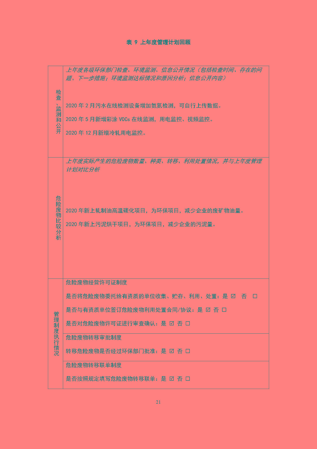 危險廢物管理計劃